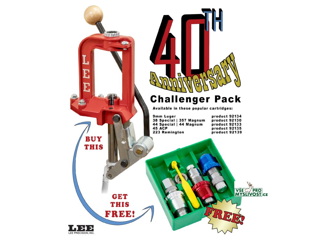 Balíček 40th Anniversary Pack obsahuje přebíjecí lis Lee Challenger III a ZDARMA trojdínou sadu karbidových matric v ráži 45 ACP.