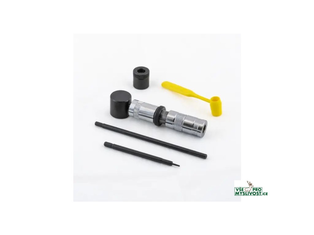 Samozřejmě existují mnohem sofistikovanější a přesnější přebíjecí systémy a sady, ale tato sada byla prostě první. Nepoužívá lis, pouze gumovou paličku (není součástí sady). Tato sada formátuje pouze krček nábojnice.