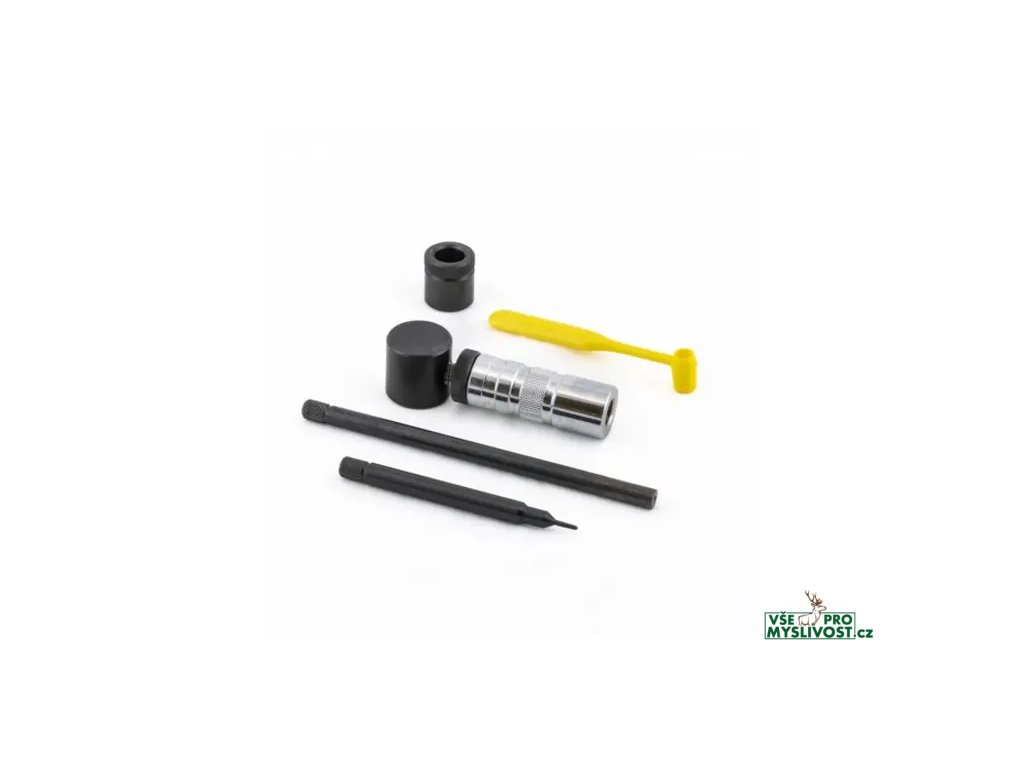 Samozřejmě existují mnohem sofistikovanější a přesnější přebíjecí systémy a sady, ale tato sada byla prostě první. Nepoužívá lis, pouze gumovou paličku (není součástí sady). Tato sada formátuje pouze krček nábojnice.