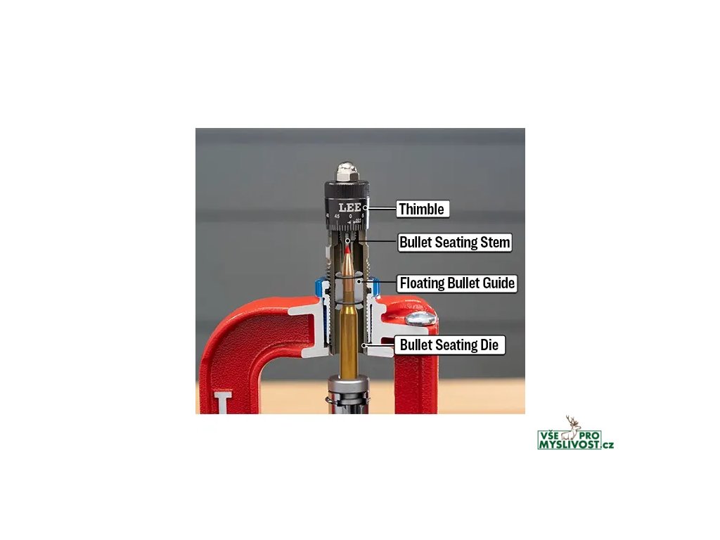 Plovoucí vodítko je oboustranné – stačí ho odšroubovat a znovu nainstalovat, což umožňuje současné usazování a krimpování – exkluzivní funkce značky Lee.