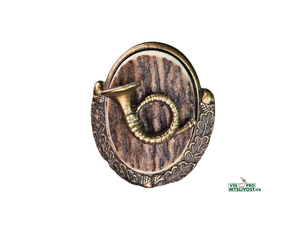 bolo z pravého parohu povrchová úprava motivu staromosaz bolo je včetně koženého pleteného řemínku, který je ukončen kovovými šiškami