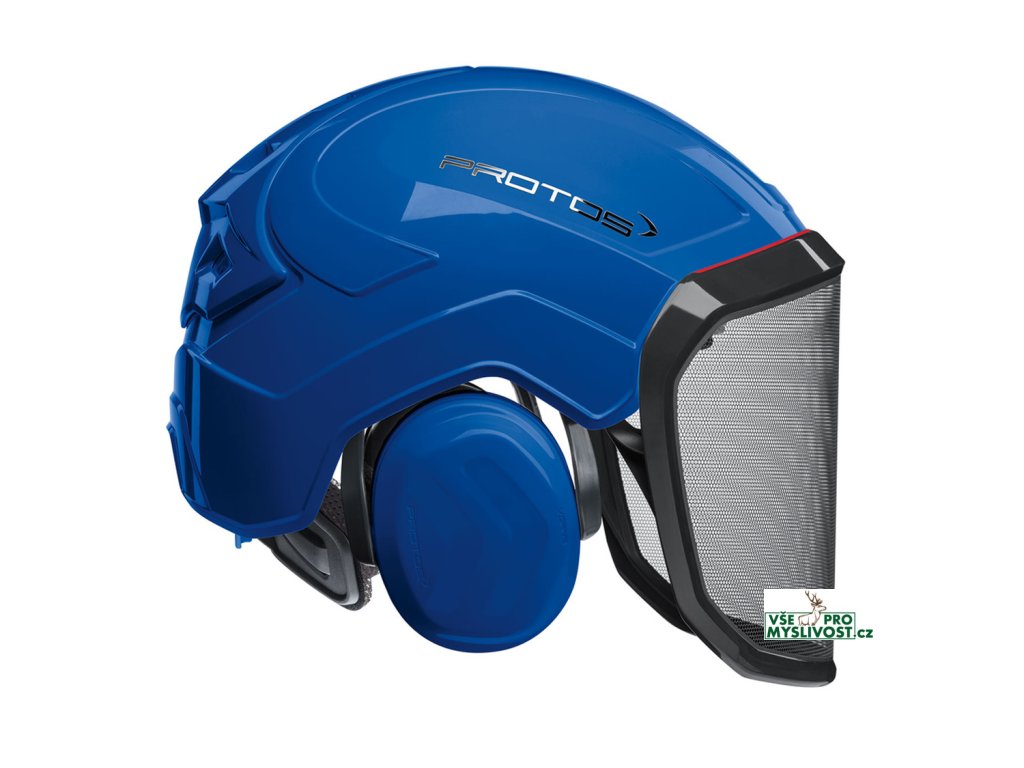 Profesionální lesnická pracovní přilba Protos® Integral Forest v modrém provedení je určena pro práce v lese, práce s motorovou pilou, pro stromolezce a arboristy. Protos Forest je vhodná zejména pro kácení. Je lehká, pohodlná a velice komfortní. Všechny součásti ochrany hlavy jsou integrovány do přilby, od štítu až po ochranná sluchátka a nehrozí tak jakékoliv zadrhnutí či uvíznutí ve větvích. Vysoký komfort při každodenním nošení zajišťují měkké polštářky uvnitř, které lze snadno vyjmout, vyprat či vyměnit za nové. Všechny součásti perfektně přilnou k hlavě, jsou variabilní a snadno se upevňují. Proto je přilba vhodná i do extrémního počasí a odolává dešti, pilinám a prachu. Velikost přilby je univerzální a dá se snadno nastavit.Protos® Integral Forest je nabízen jako komplet se sluchátky a ochranným štítem F39 (39 otvorů / cm2).Protos® Integral Forest je certifikován podle EN 397, EN 352-3 a EN 1731.