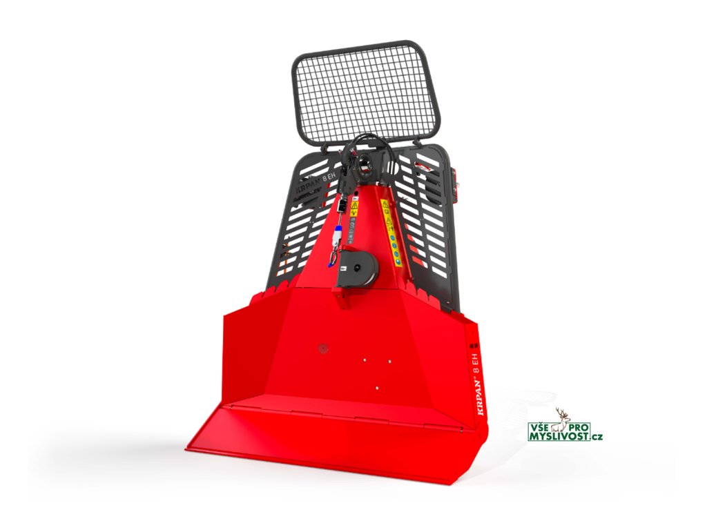 Nová generace lesnických navijáků Vitli KRPAN pro nejnáročnější uživatele s vylepšenou ergonomií ovládání se může pochlubit řadou patentů a technických inovací, které zlepšují použitelnost stroje. Nové navijáky tak přinášejí na trh řešení, jako je vypínání tahu, funkce STOP spínače na spodní kladce nebo u mechanických navijáků STOP spínač na horní kladce. Kromě těchto novinek se nové navijáky mohou pochlubit celkem 11 různými patentovanými řešeními.Hydraulicky ovládaný tříbodový traktorový naviják KRPAN 8 EHP se sklopným rampovacím štítem je vybaven proporcionální brzdou a reduktorem pro pomalejší tažení. Naviják má mechanismus zapínání spojky umístěn uvnitř rámu a chráněn proti poškození. Brzdový mechanismus je rovněž bezpečně umístěn uvnitř rámu navijáku. Rám navijáku je tvarovaný dovnitř se dvěma zkosenými stranami a zkosenou spodní plochou. Při přibližování se čela kmenů nezasekávají a sjíždějí směrem ke středu. Hrany rámu jsou nyní zaoblené, takže se dřevo nepoškozuje při rampování nebo manipulaci.Naviják se dodává včetně válcovaného ocelového lana 12 mm / 100 m s koncovkou a dálkového ovládání TERRA Alpha 6-A1H. Toto dálkové ovládání se používá s hydraulickými navijáky s proporcionální brzdou. Jeho výhodou je, že pomocí otočného knoflíku obsluha může plynule regulovat napnutí ocelového lana a může tak přesně uvolnit napětí v laně při kácení stromů pomocí navijáku. Při vytahování břemene lze ocelové lano plynule uvolnit podle potřeby a zabránit tak uvolnění lana nebo řetězů a následné ztrátě kmenů z přídavného zařízení. Pokud je traktor zvednutý, může jej uživatel kontrolovaně spustit na zem.hydraulicky ovládaný sklopný rampovací štítcentrální mazací systém s rozprašovačem pro mazání hnacího řetězu. Je nainstalovaný na vnější straně skříně navijáku a je snadno přístupnýproporcionální brzda - brzda s plynulou regulací brzdné síly v případě potřeby plynule brzdí a uvolňuje napětí lana a tím odlehčuje zatížení navijáku. Tímto způsobem nedochází k namáhání navijáku a traktoru a nedochází k uvolnění tažného lana na bubnu navijáku a jeho následnému zaseknutí.reduktor pro pomalejší tažení - traktor pracuje při nižším zatíženíaxiálně pohyblivé řetězové kolo umožňuje delší životnost pětilamelové spojkyhorní kladka s delším a robustnějším vedením lana vybavená STOP spínačemspodní kladka s uzavírací pojistkou proti vypadnutí lana, pro snížení těžiště a bezpečnější boční vytahovánísklopná ochranná mříž pro snadnou přepravu a skladováníergonomicky navržený levostranný (po směru jízdy) držák řetězové pily s 90° otáčením, které usnadňuje vkládání a manipulaci s piloumísta pro bezpečné uložení sekery a sapinynaviják lze doplnit držákem kanystru (který je vhodný pro všechny typy kanystrů bez ohledu na velikost a výrobce), boxem na nářadí, výstražným zařízením se zvukovou signalizací upozorňující na poslední vrstvu ocelového lana na bubnu a STOP spínačem u spodní kladky (Požadované doplňky uveďte do poznámky v objednávce. Po odsouhlasení konečné ceny bude naviják s Vámi zvoleným příslušenstvím zadán do výroby.) Při nedodržení doporučeného výkonu traktoru hrozí poškození navijáku, na které se nevztahuje záruka.Návod k obsluze