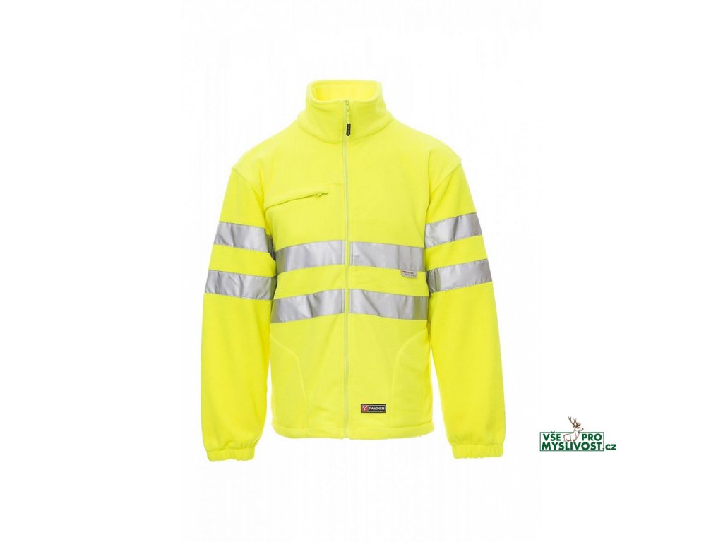 Pánská flísová bunda s pruhy 3M, s plastovým celozipem, stahovací šňůrka v pase, elastické stahovací manžety na zápěstí, dvě kapsy na zip, jedna přední kapsa na zip, zesílené švy.