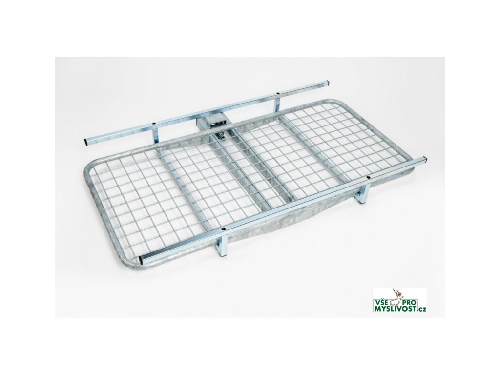 Nosič zavazadel - plošina - je určen pro vozidla vybavená tažným zařízením. Montáž se provádí pouze osazením na kouli tažného zařízení. Tuhost konstrukce je zajištěna robustní celokovovou svařovanou konstrukcí bez dalších šroubových spojů. Plošina je určena pro přepravu jakéhokoliv materiálu a nákladu i v náročném terénu. Povrchová úprava je prováděna ve variantě žárový zinek. Nosnost nosiče je dána technickou specifikací tažného zařízení a výrobcem vozidla. Nosič je určen pro cesty mimo veřejné komunikace. Nemá atest MD. Nosič jistě ocení nejen myslivci a řemeslníci. Přepravní plošinu lze v přední i zadní části doplnit ohrádkou pro bezpečnější přepravu nákladu - je součástí dodávky.