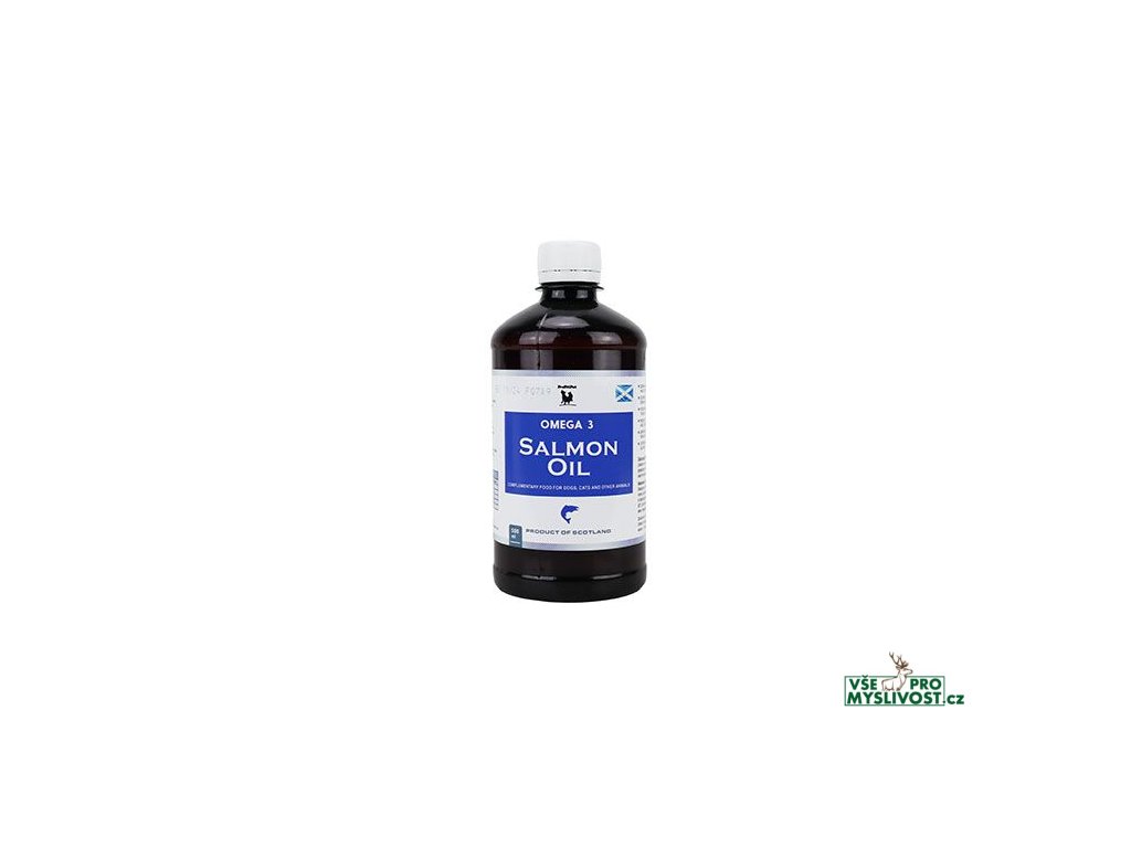 Bohatý zdroj vitamínů, minerálů a omega 3 a omega 6 mastných kyselin - to vše už v jedné dávce našeho lososového oleje. 100% přírodní olej získáváme z lososa atlantského, který pobývá v klidných zálivech Skotska. Dopřejte svým mazlíčkům hustou a lesklou srst. Pravidelným přidáváním do stravy pomáháte řešit mnoho zdravotních problémů svých mazlíčků jako je lámavost a vypadávání srsti, lupy, vysychání a záněty kůže nebo alergické reakce.