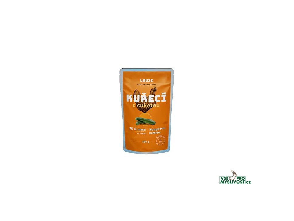 Kompletní krmivo bez obilnin pro psy každého věku i plemene, kuřecí s cuketou. Nabízí Vašemu miláčkovi možnost stravy z kvalitního masa (95 % v pevné složce). Pro podporu peristaltiky střev a simulaci minoritní rostlinné složky v potravě psů slouží příměs cukety. Krmivo neobsahuje žádné konzervanty, dochucovadla, barviva, pouze 95 % masa, 5 % cukety, vitamínů a minerálů.
