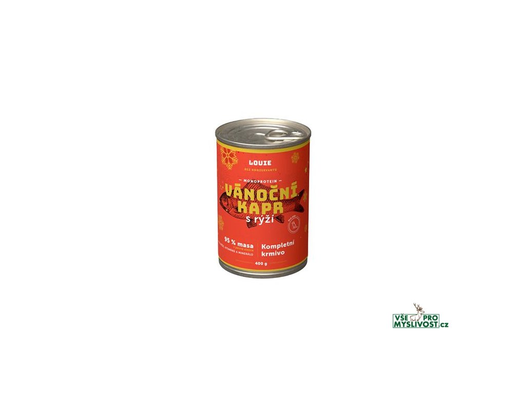 Vánoční kapr od Louie je limitovaná edice plná sváteční atmosféry. Jemné maso z kapra doplněné o rýži potěší i ty největší psí gurmány. Lehce stravitelné, bohaté na omega-3 mastné kyseliny a bez zbytečností. Dokonalá vánoční hostina pro čtyřnohé členy rodiny.