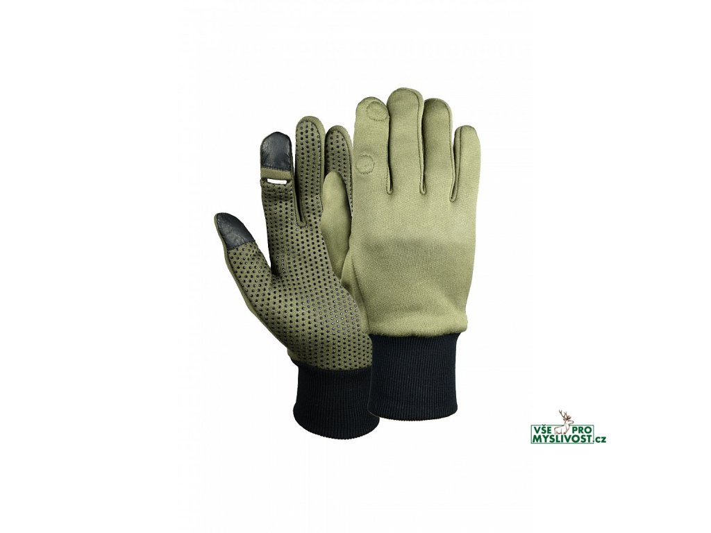Lovecké rukavice. Protiskluzové knoflíky na dlani . Střílecí prst na obou stranách lze zafixovat magnetem. Velmi dobrá hmatová citlivost. Kompatibilní s dotykovou obrazovkou