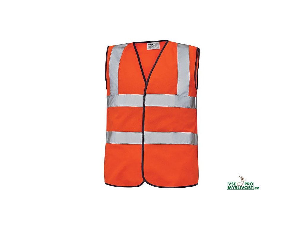 • HI-VIS vesta s 5 cm reflexními pruhy přes ramena a okolo hrudi a pasu • lemování kontrastními černými paspulemi • zapínání na suchý zip