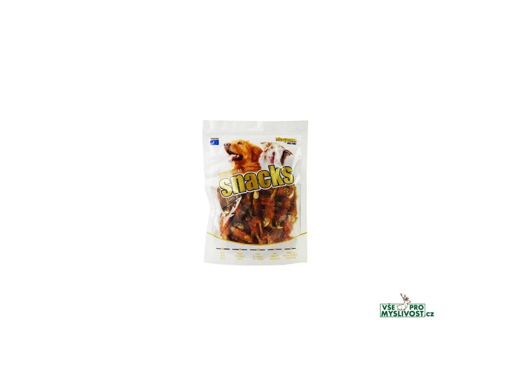 Měkká, přírodní masová pochoutka pro psy. Sušené rybky omotané proužkem kuřecí svaloviny.Slouží jako odměna při hře, výcviku nebo jako doplněk stravy při cestách.