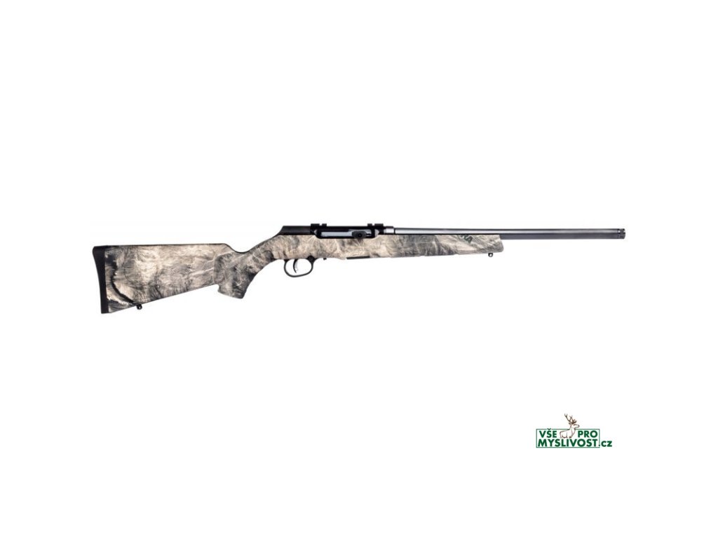 Kvalitní malorážka v kamuflážovém provedení s hlavní se závitem a základnolu montáže Weaver/Picatinny, rotačním zásobníkem na 10 ran