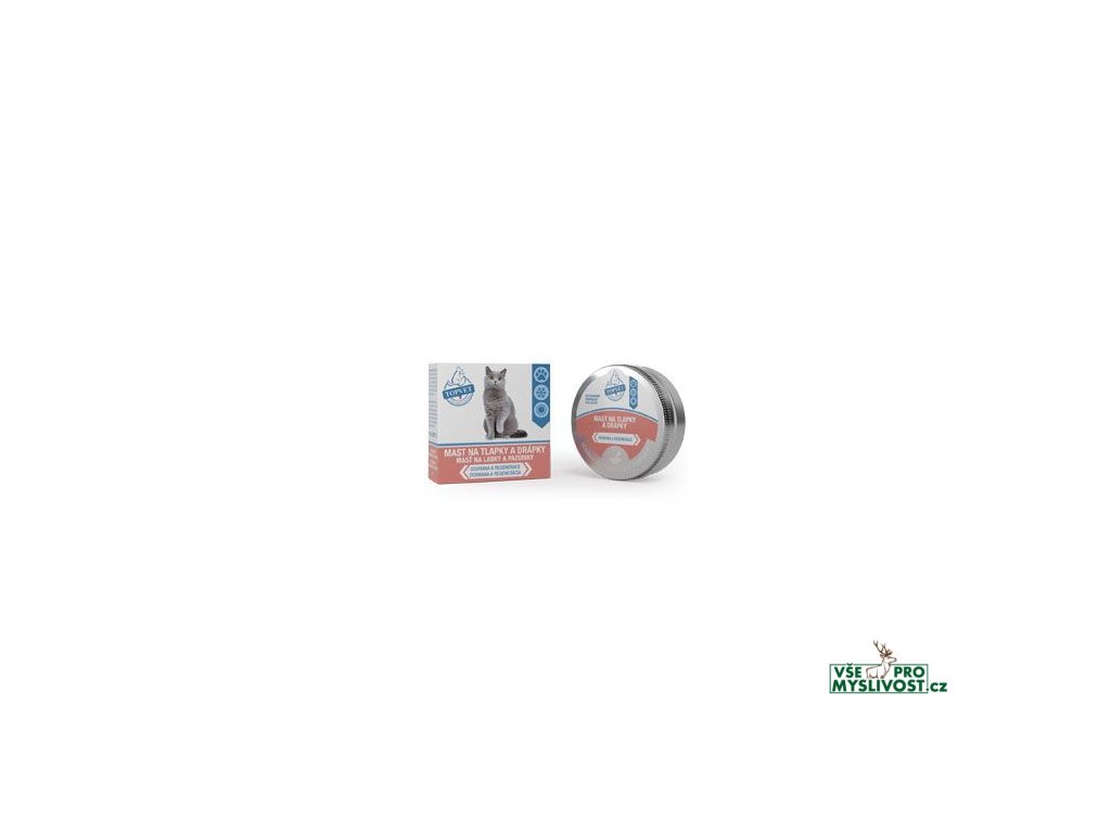 Mast na tlapky a drápky Topvet je luxusní prostředek k preventivnímu ošetření kůže tlapek, drápků a jejich lůžek. Mast vykazuje místní ochranný účinek proti nepříznivým vlivům prostředí, zejména proti vlivu soli, posypových materiálů, dráždivých látek uvolňujících se z horkých asfaltových povrchů chodníků a vozovek, nadměrné vlhkosti, prachu, bláta, cizorodých látek aj. Mast optimálním způsobem vyživuje, regeneruje a hojí drápky a jejich lůžka. Snižuje lomivost a třepivost drápků, zvyšuje jejich elasticitu a pevnost.