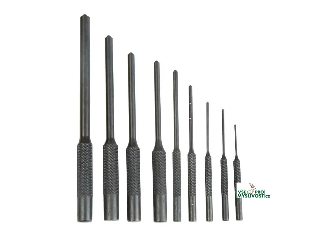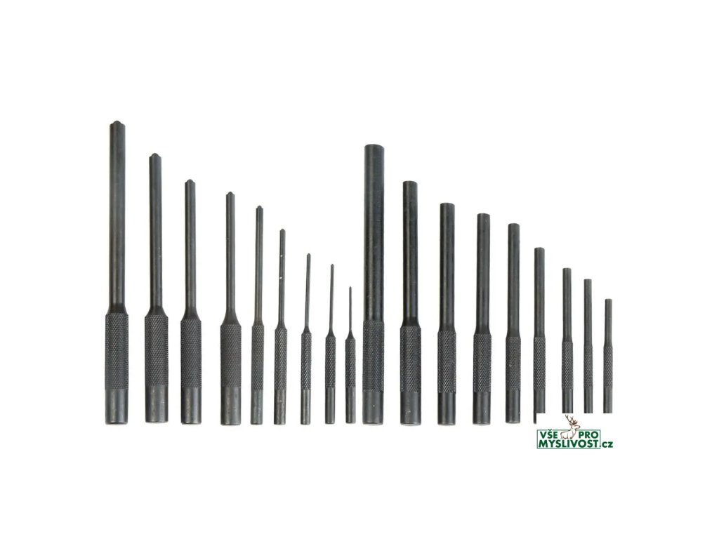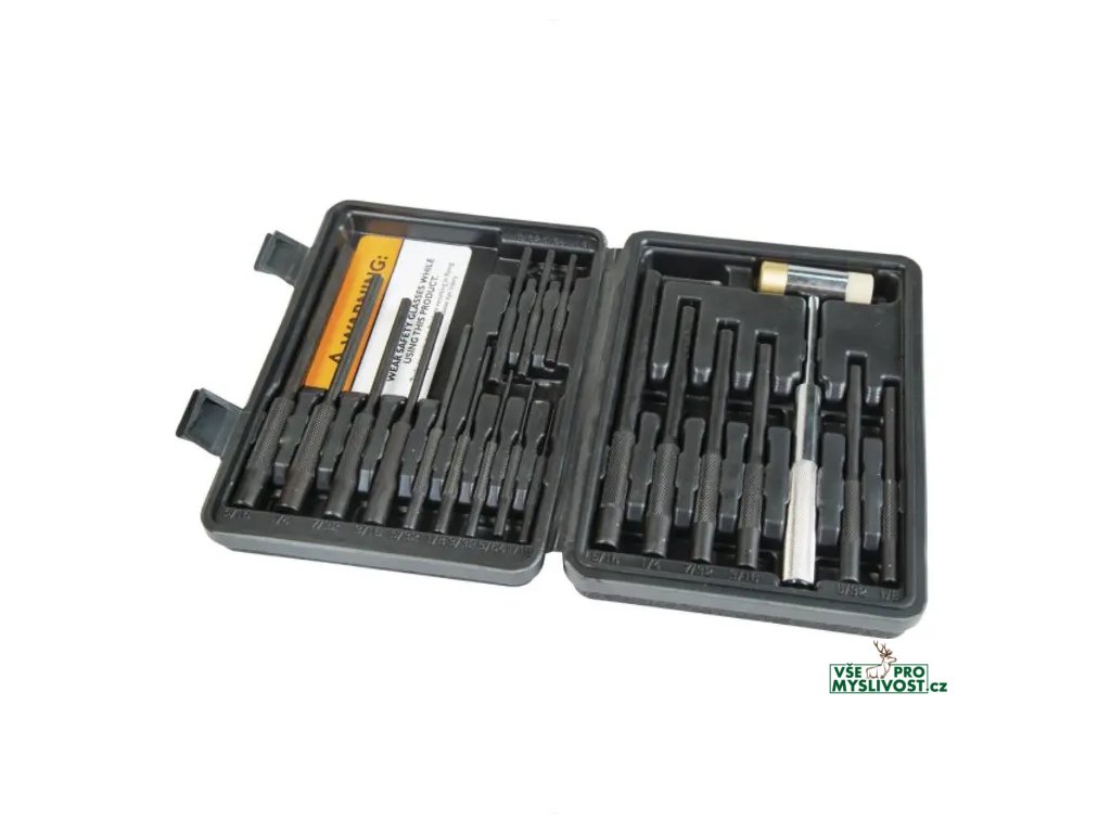 Tato sada kombinuje vše, co potřebujete pro práci s dutými pružnými čepy (tzv. roll pins) – obsahuje jak startovací průbojníky pro snadné zavádění, tak i průbojníky s kulovým profilem pro bezpečné vytlačování čepů, a navíc i precizní puškařské kladívko. Vše je přehledně uloženo v pevném a odolném plastovém pouzdře, které chrání nástroje a usnadňuje přenášení i skladování.