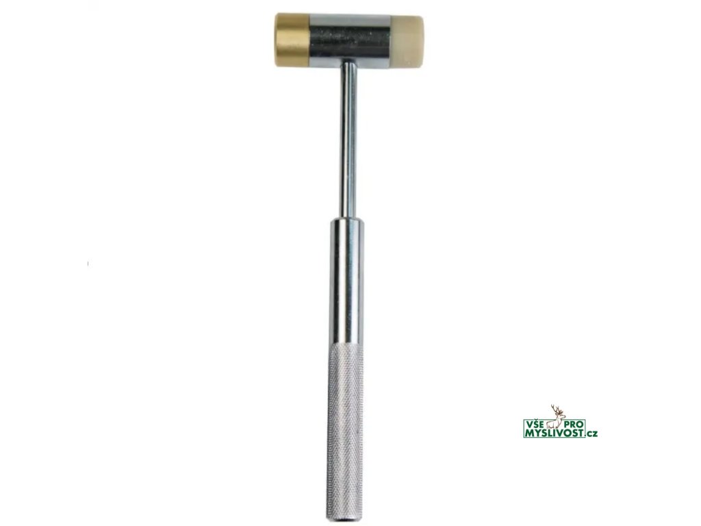 - Puškařské kladívko s vyměnitelnými hlavami – nylonová hlava chrání povrchy zbraně, mosazná je ideální pro práci s průbojníky, aby nedošlo k jejich deformaci
