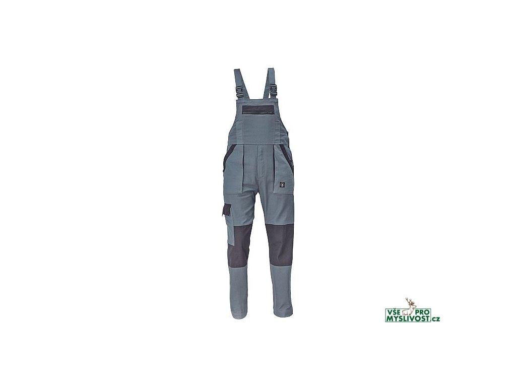 • pánské pracovní kalhoty s laclem a elastickým pasem • široké šle s plastovými sponami • 2 přední kapsy, 1 stehenní kapsa • 1 velká náprsní kapsa, 2 zadní kapsy • zesílená oblast kolen • nastavitelná délka nohavic