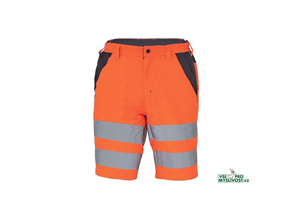 • pánské HI-VIS pracovní šortky s elastickým pasem • 2 přední kapsy, 2 zadní kapsy • dvojice tištěných 7 cm reflexních pruhů po obvodu stehen • reflexní paspulky