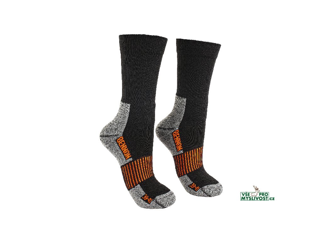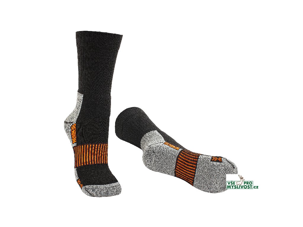 Vysoce zátěžové, profesní, trekové a sportovní ponožky z MERINO vlny pro víceúčelové využití.Merino – velmi jemná ovčí vlna s výjimečnými vlastnostmi:- v létě chladí, v zimě hřeje- není alergenní- poskytuje UV ochranu- neabsorbuje tělesné pachy- neškrábe, nepíchá, neplstnatí- využívá se na výrobu funkčního prádla Velikosti: 36-38, 39-41, 42-44, 45-47, 48-49