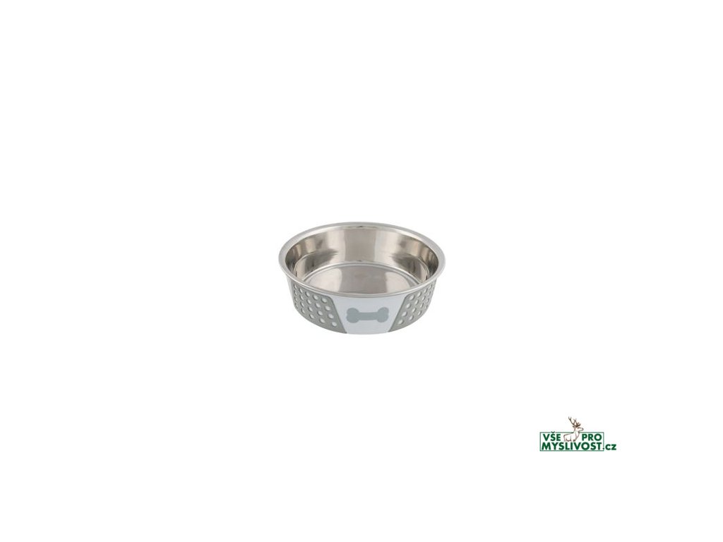 Nerezová miska s atraktivním silikonovým opláštěním.- nerezová miska se snadno udržuje v čistotě