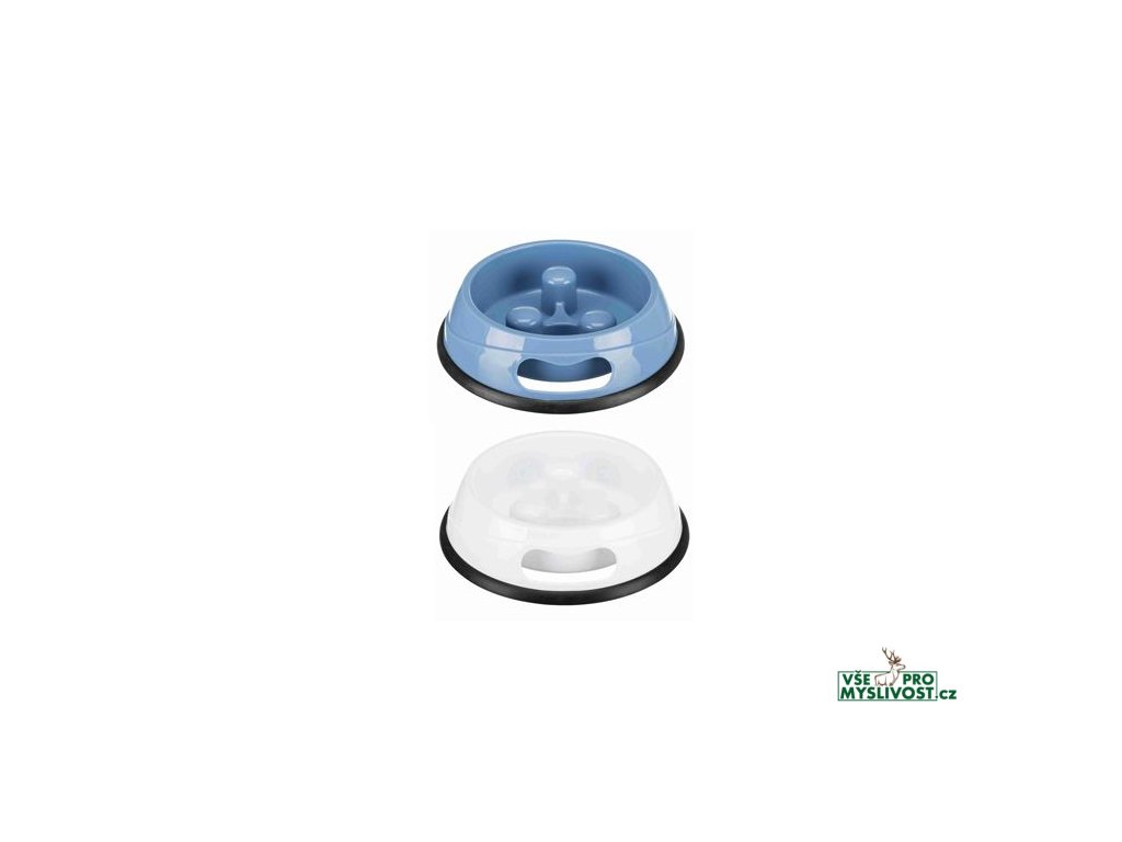 Speciální plastová miska uvnitř s výčnělky, které zabraňují psu hltat potravu. Při hltání potravy dochází i k nadměrnému polykání vzduch a následná těžkost od žaludku. U takového psa je vyšší pravděpodobnost vzniku torze žaludku. Miska je na dolním okraji opatřena protiskluzovou gumou.