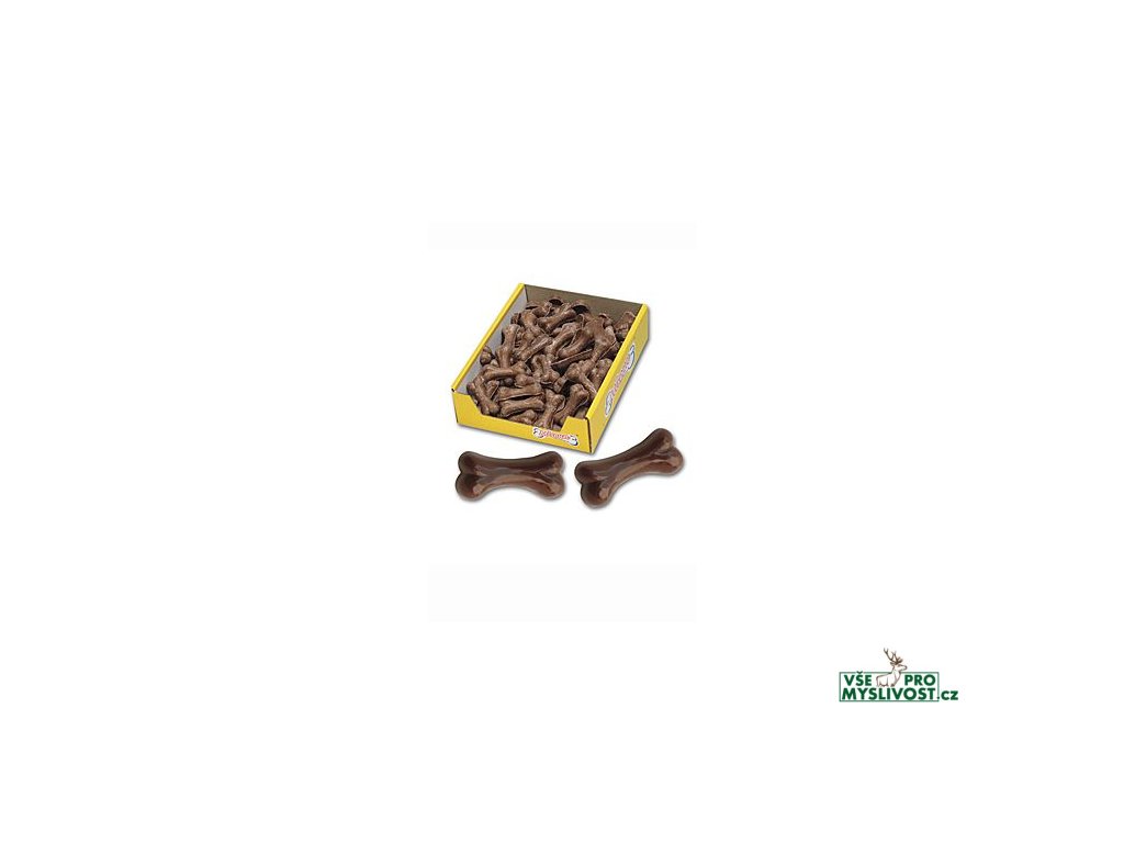Doplňkové krmivo pro psy. Bonbony pro psy s čokoládovou příchutí ve tvaru kostiček.