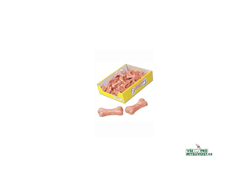 Doplňkové krmivo pro psy. Bonbony pro psy s lososovou příchutí ve tvaru kostiček.
