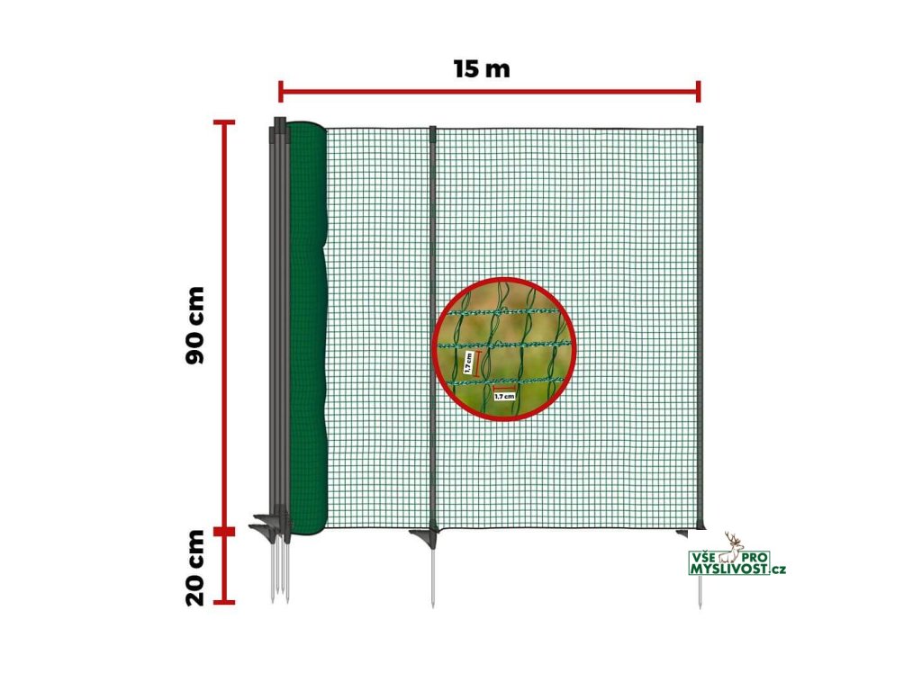 - 1 ks mobilní síťě v diskrétní zelené barvě, délka 15 m, výška 90 cm