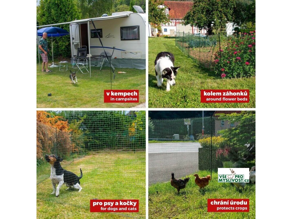 Stabilní konstrukce mobilního oplocení je připravena na okamžitou instalaci na potřebné místo. Jezdíte na psí závody nebo kempovat? Pak je to ideální řešení k vytvoření soukromí a bezpečného prostoru nejen pro vašeho pejska. Univerzální síť je možné využívat na zahradě k ochraně záhonků, jako mobilní ohradníkovou síť pro drůbež nebo drobné zvířectvo.