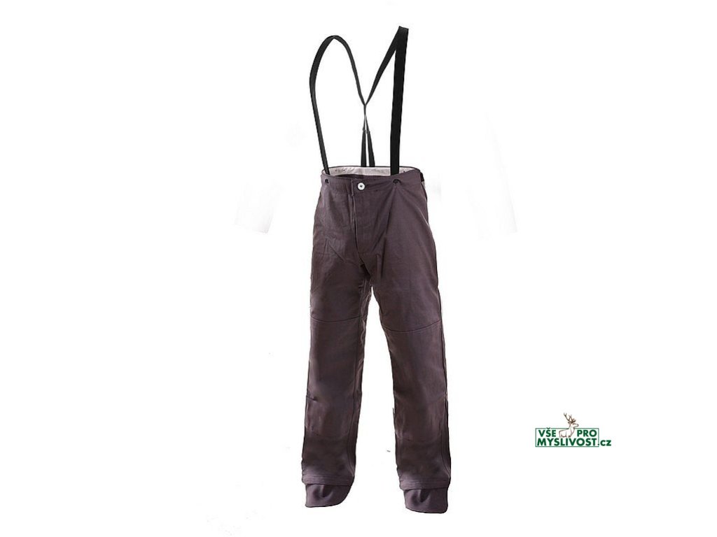 Pánské svářečské kalhoty, šle s gumou vzadu, pevný pas se zapínáním na knoflíky, pravá zadní kapsa na suchý zip, zdvojená kolena, kryty přes obuv pro svářeče. Doporučené použití: svářeči, stavebnictví, slévárny, práce s hořlavinami, pájení.
