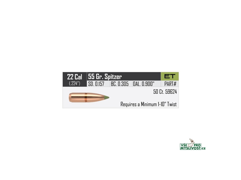 Bezolovnaté monolitické střely Nosler Expansion Tip (E-Tip) .22 cal, dia .224, 55grs (3,5g). SKU: 59624
