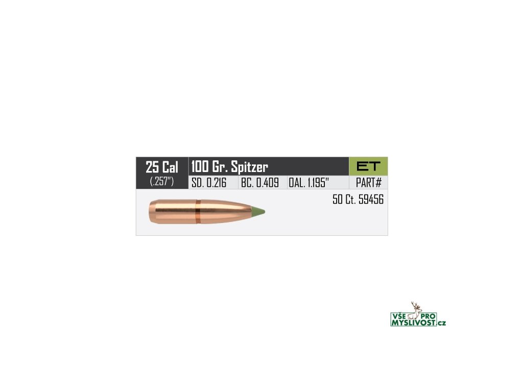 Bezolovnaté monolitické střely Nosler Expansion Tip (E-Tip) .25 cal, dia .257, 100grs (6,4g). SKU: 59456