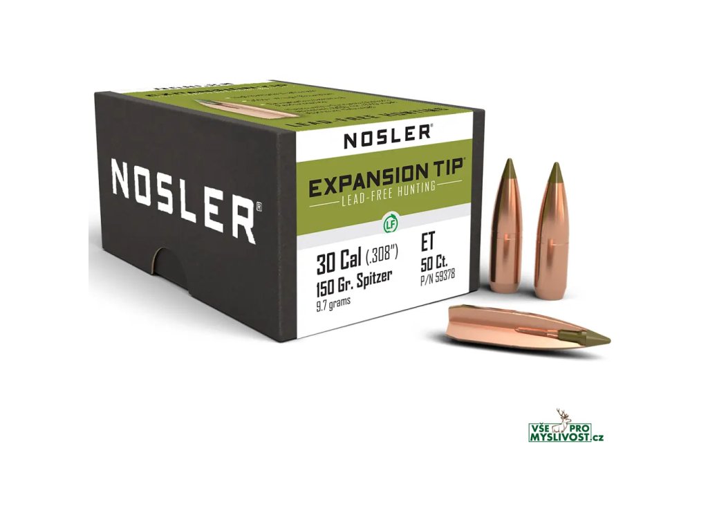 Bezolovnaté monolitické střely Nosler E-Tip .30 cal, dia .308, 150grs (9,7g). SKU: 59378
