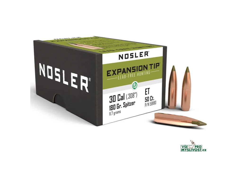 Bezolovnaté monolitické střely Nosler E-Tip .30 cal, dia .308, 180grs (11,7g). SKU: 59180
