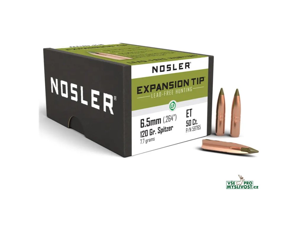 Bezolovnaté monolitické střely Nosler E-Tip 6,5mm, dia .264, 120grs (7,7g). SKU: 59765