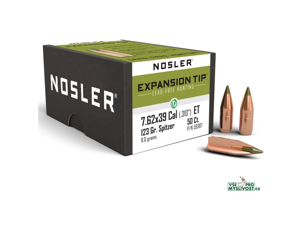Bezolovnaté monolitické střely Nosler E-Tip 7,62x39R, dia .310, 123grs (8g). SKU: 59387