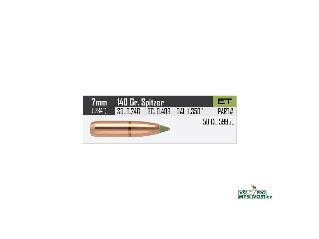 Bezolovnaté monolitické střely Nosler Expansion Tip (E-Tip) 7mm, dia .284, 140grs (9,1g). SKU: 59955