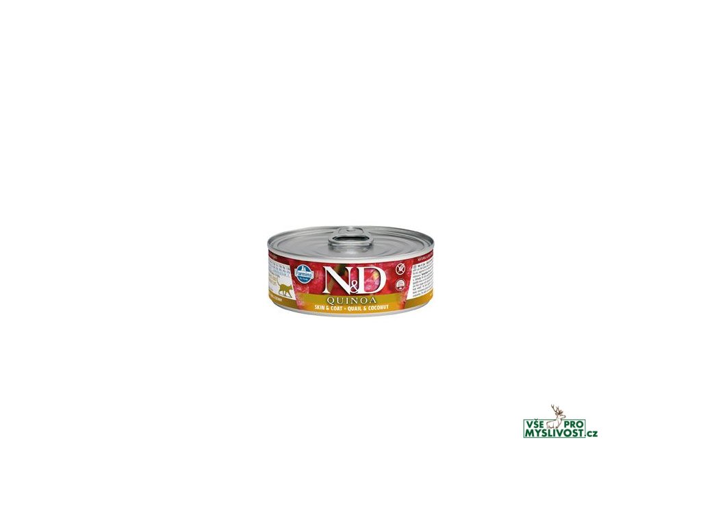 Farmina N&D Quinoa Quail & Coconut je krmivo pro zvláštní účely výživy určené k podpoře omezení intolerance určitých komponentů a živin.