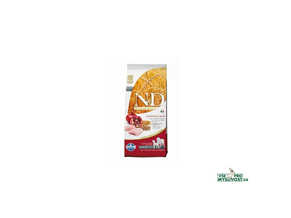 N&D Low Grain Chicken & Pomegranate Senior M/L DogSENIOR - Kuře, špalda, oves a granátové jablko.