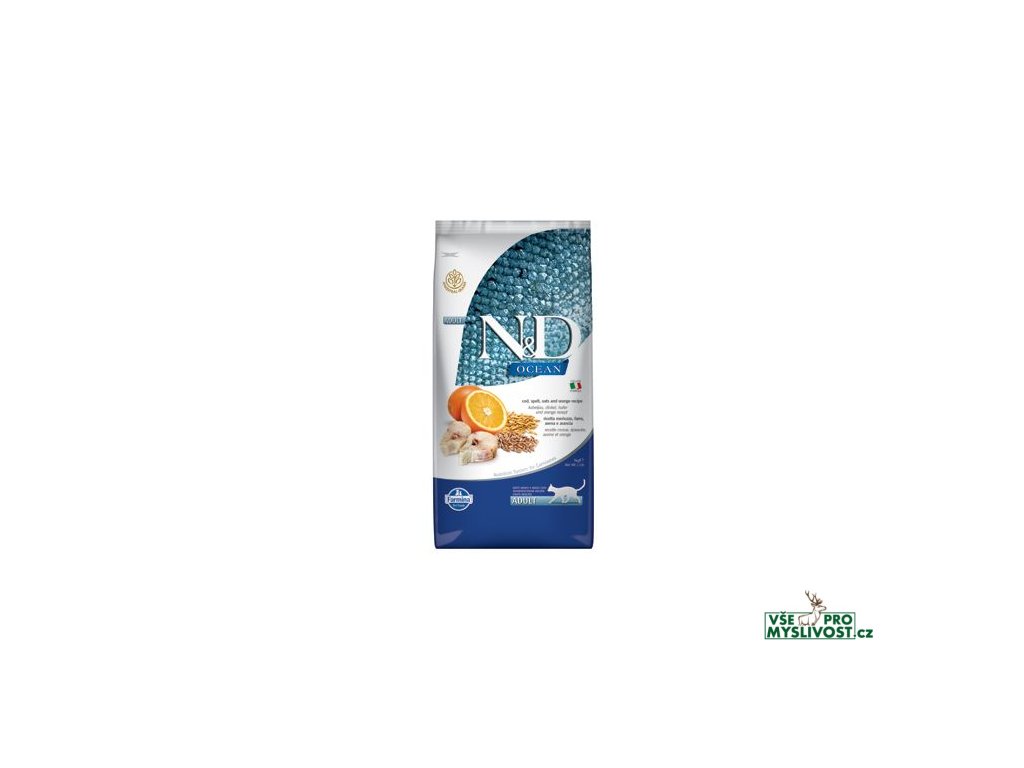 N&D OCEAN Low Grain Codfish & Orange Adult CatTreska, špalda, oves a pomeranč.