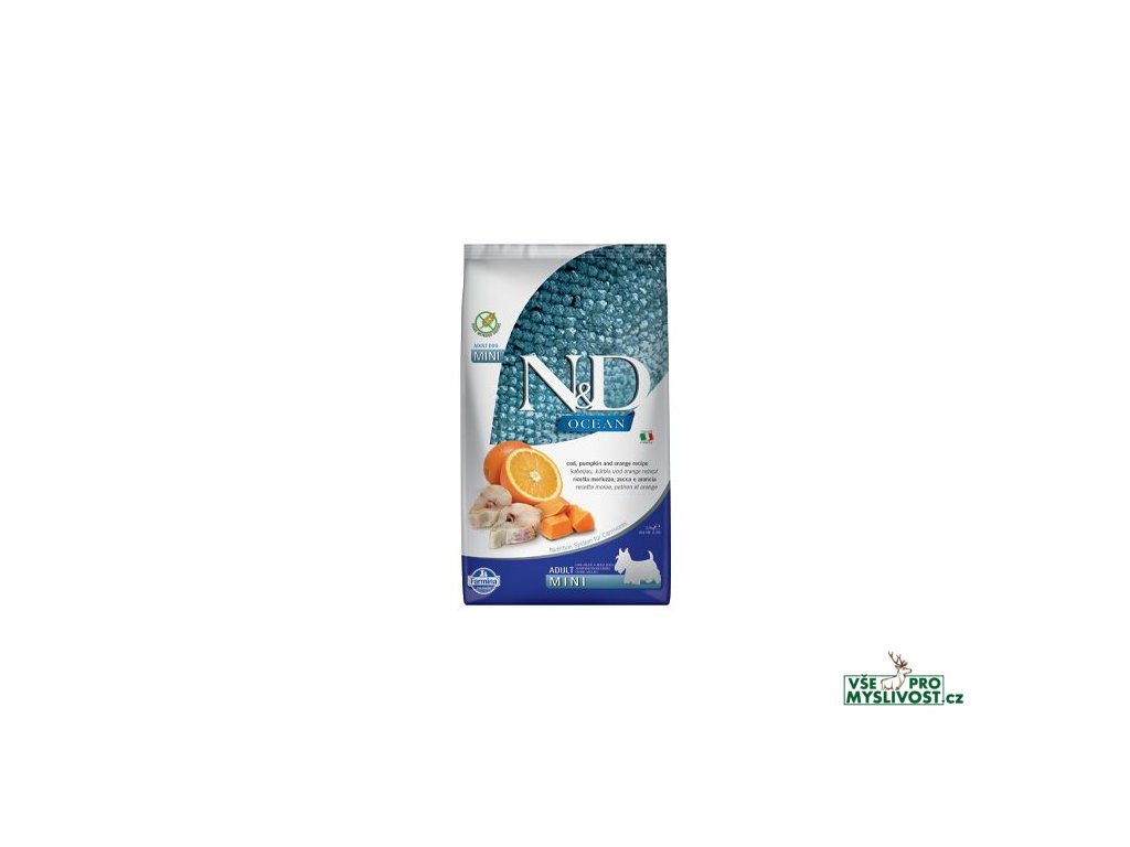 N&D OCEAN Codfish & Pumpkin & Orange Adult Mini DogTreska, dýně a pomeranč.