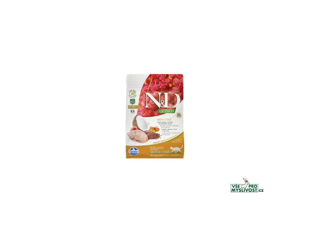 N&D Quinoa SKIN & COATKřepelka, quinoa, kokos, kurkuma. Kompletní vyvážené krmivo pro dospělé kočky.