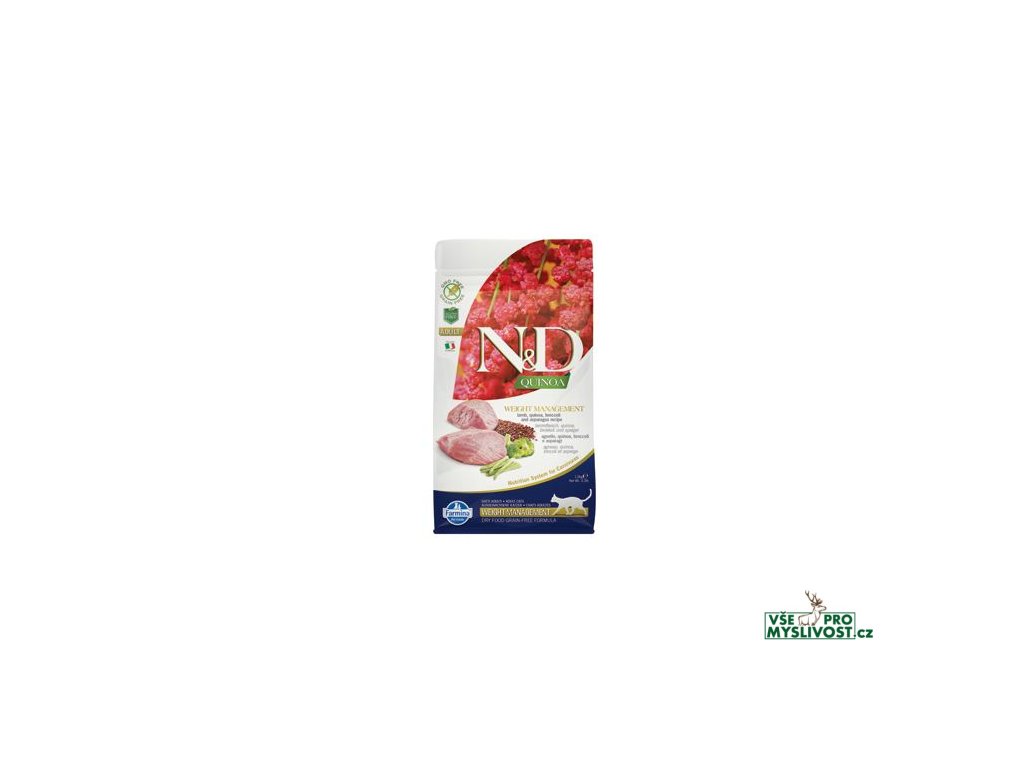 Farmina N&D Quinoa Weight Management je krmivo pro zvláštní účely výživy koček určené ke snížení nadměrné tělesné váhy.