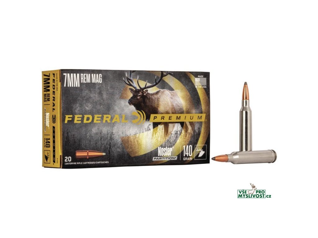 Náboj kulový Federal, Premium Vital Shok, 7mm RemMag, 140GR (9,0g), Nosler Partition