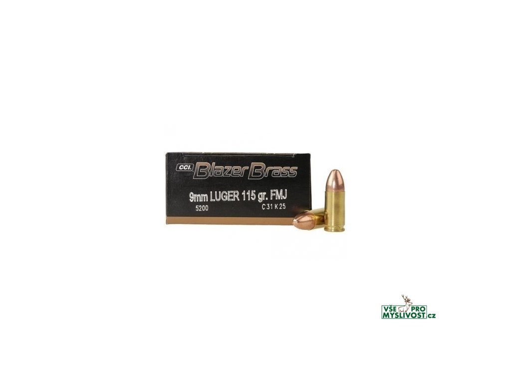 Náboj kulový CCI, Blazer Brass, 9mm Luger, 115GR (7,5g), FMJ