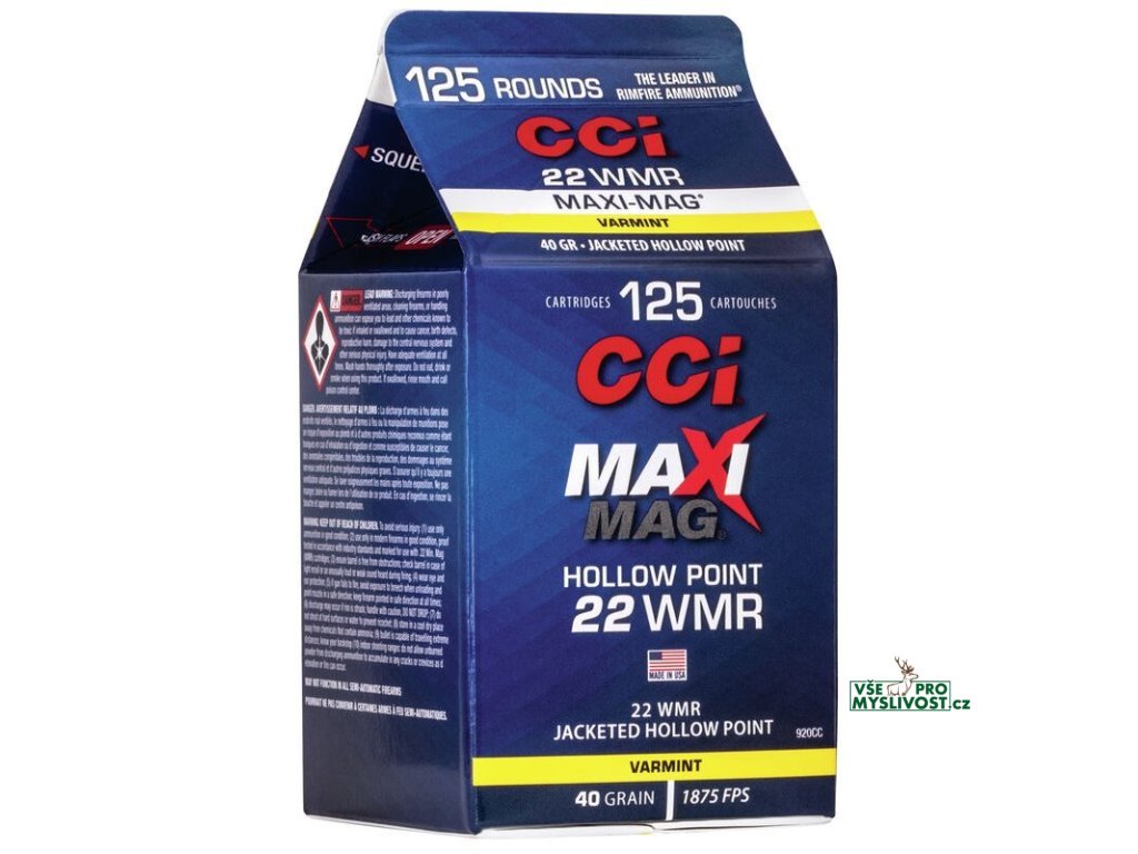 Náboj kulový CCI, MAXI-MAG,.22WMR, 40GR (2,6g), HP