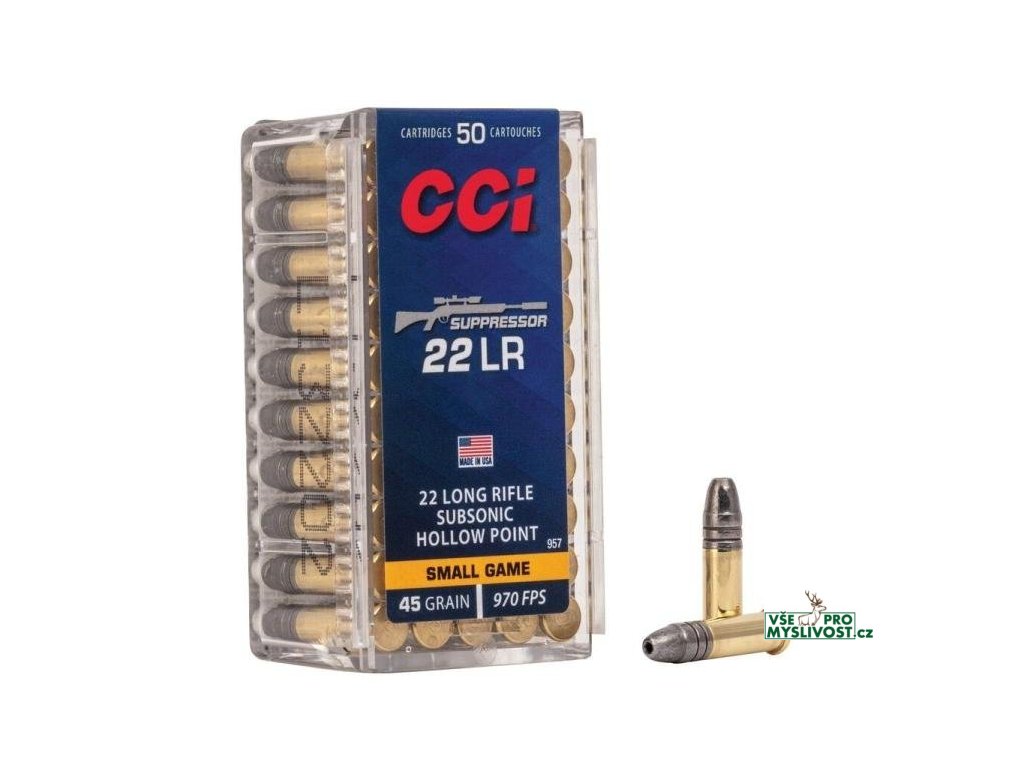 Náboj kulový CCI, Suppressor, 22LR, 45GR (2,92g), Hollow Point