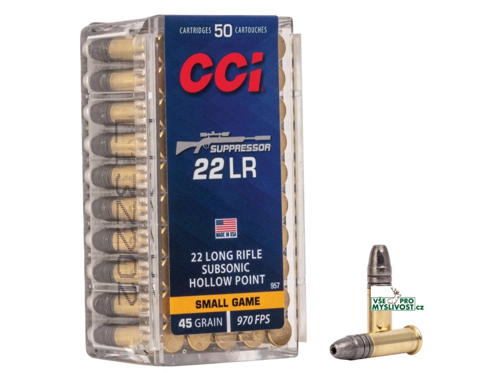 Výjimečně tiché, ale stále výkonné malorážové střelivo je nyní na dosah. CCI® Suppressor Max™ je speciálně navrženo pro optimální přesnost, terminální účinek a snížení hluku při střelbě přes malorážové tlumiče. Speciální střela s dutou špičkou zajišťuje účinné rozdělení (segmentaci) při zásahu — i při subsonické úsťové rychlosti 970 ,fps a nízké hlučnosti.