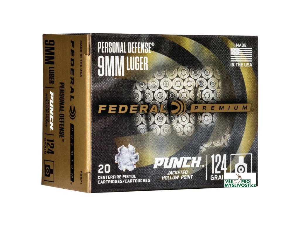 Získejte ochranu, která opravdu zasáhne. Punch® vychází z desetiletí zkušeností Federal® Ammunition s vývojem špičkového obranného pistolového střeliva. Pro každou ráži je pečlivě zvolen a konstruován projektil tak, aby optimalizoval terminální výkon v nejčastějších situacích. Kvalitní mosazná nábojnice a utěsněná zápalka zajišťují spolehlivé podávání i zapálení. Federal Punch 9mm Luger 124 gr JHP – obranné střelivo s JHP střelou, vyváženou penetrací a expanzí, mosaznou nábojnicí a utěsněnou zápalkou. Punch® – ochrana s „knockout“ účinkem
