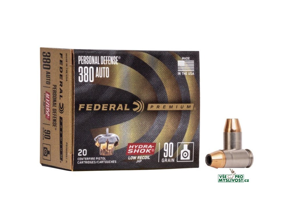 Náboj kulový Federal, Personal Defense, .380 Auto, 90GR (5,8g), Hydra-Shok JHP, Low Recoil