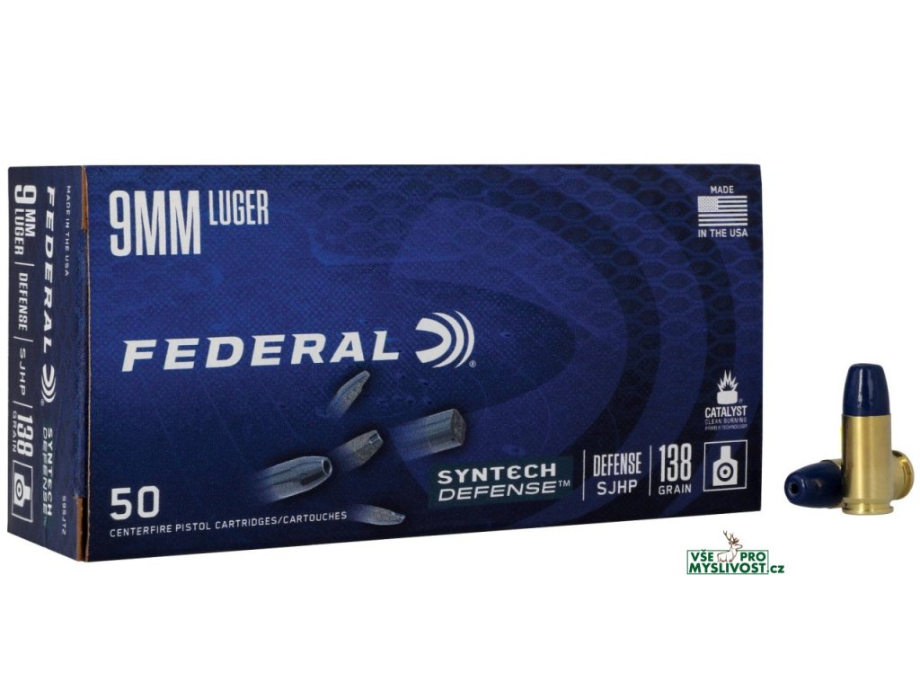 Syntech® navždy změnil tréninkovou střelbu a nyní přináší revoluci i do osobní ochrany. Federal Syntech Defense™ nabízí dynamický terminální účinek díky střele s dutou špičkou, která se po zásahu rozdělí na tři segmenty a hluboko pronikající jádro. Jádro dosahuje průniku 30 až 46 cm (12–18”) v balistickém gelu, a to jak bez překážky, tak i po průstřelu silného oděvu – což je klíčový standard v sebeobraně. Tři oddělené segmenty vytvářejí sekundární ranivé kanály o hloubce více než 15 cm, čímž výrazně zvyšují účinek zásahu.